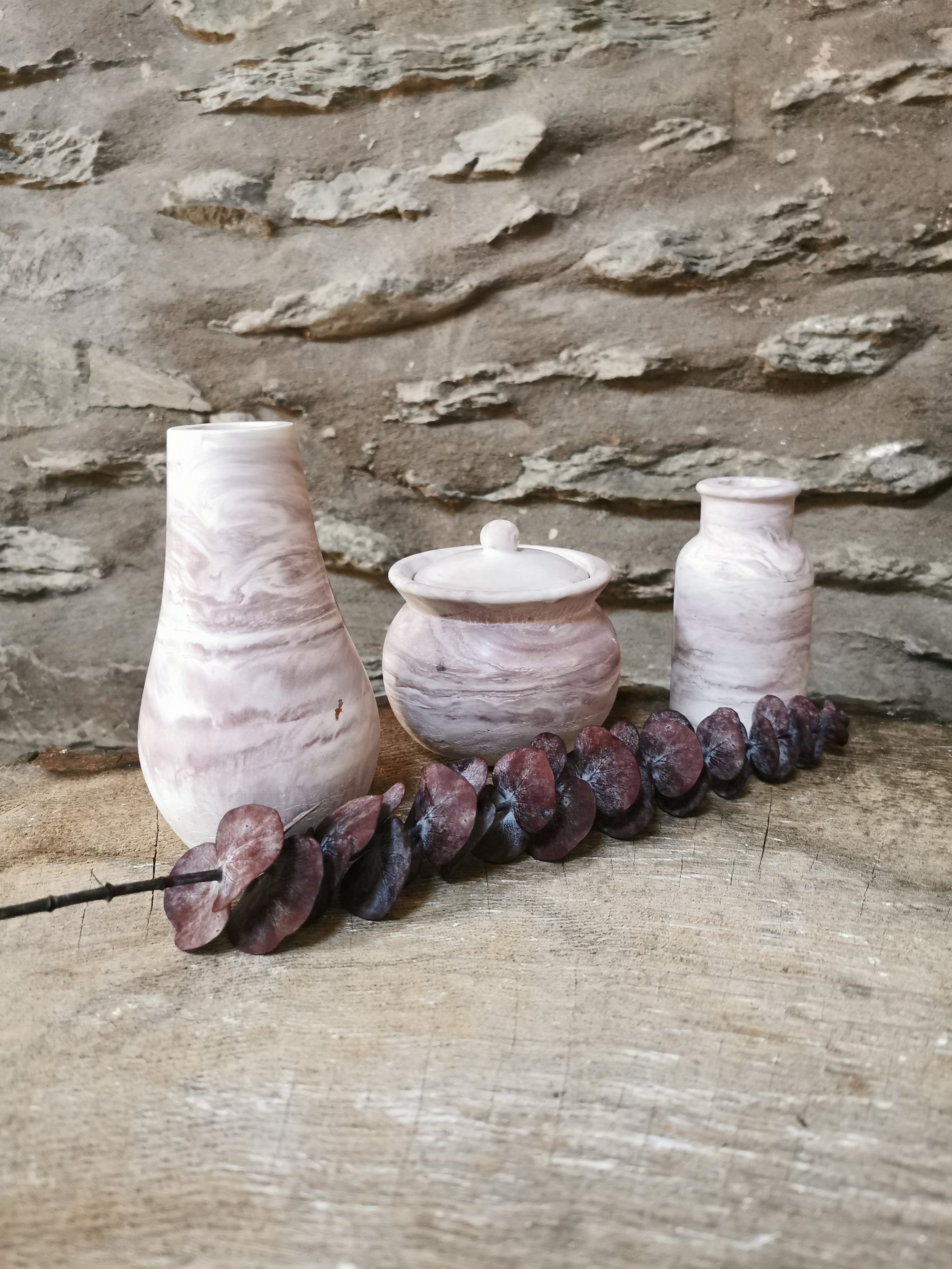 A great gift set, the pot is 7cm high, the larfe vase 13cm and the small vase 10cm.