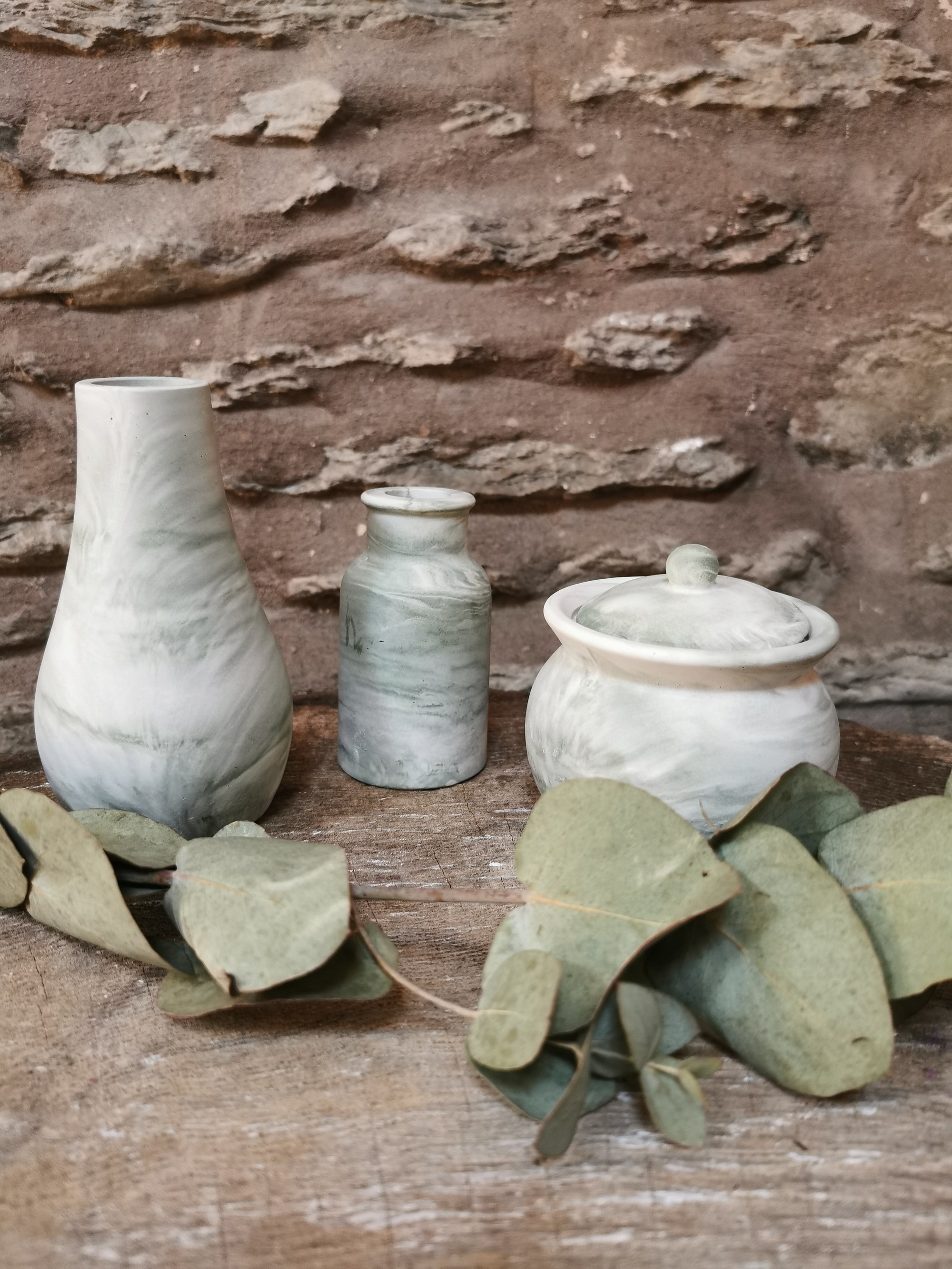 A great gift set, the pot is 7cm high, the large vase 13cm and the small vase 10cm.
