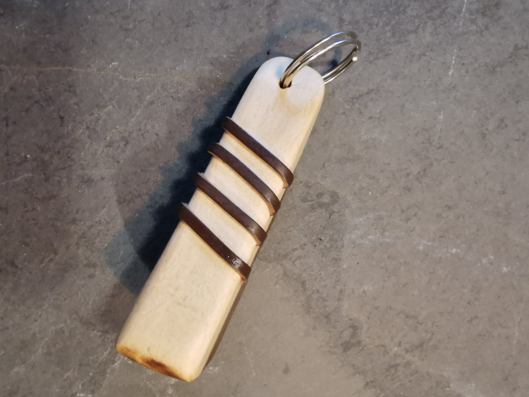Live edge Walnut wood, with leather banding. Approx 9cm long